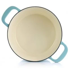 This large 7 qt. enameled cast iron Dutch oven is the perfect combination of versatile and stylish. Constructed with durable cast iron that distributes and retains heat evenly, helping you to cook and bake your favorite dishes with the best result. Enameled surface is nonstick and easy to clean and the integrated handles let you move from stove to oven to table with ease. This pot is perfect for cooking, baking, reheating, and serving. Oven safe up to 500-Degrees Fahrenheit Use pot holders whenever moving or lifting hot cookware. Compatible over fire on low to medium heat, gas safe, electric safe, glass stovetop safe, oven safe, and induction safe. Not dishwasher safe, do not use metal utensils. Hand wash only.