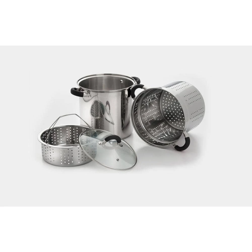 This multifunction cooker allows you to steam your favorite vegetables, cook pasta and use it as a large stockpot. Encapsulated base provides faster and even heat distribution. Constructed in 18/10 stainless steel and induction stovetop ready.