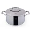 - Tri-ply stainless steel construction with an aluminum core for fast and even heat distribution