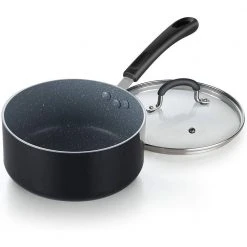 - Includes: 1 and 2 quart saucepans with lids, 6 quart stockpot with lid, 8 and 9. 5-inch fry pans