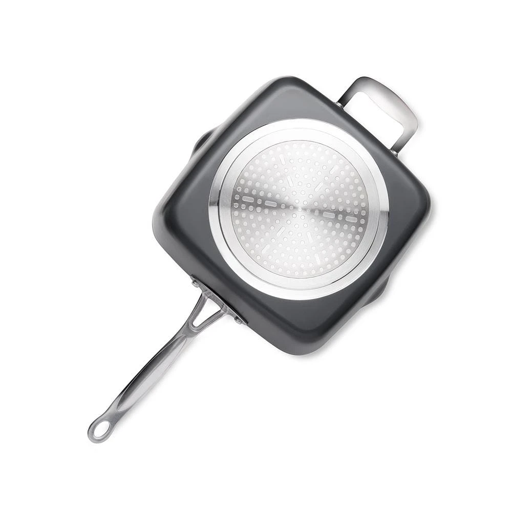 Gotham Steel 9. 5 in. deep titanium and ceramic square pan. About the Product Gotham Steel is the first Product of its class to actually utilize high-grade titanium and ceramic as surface finishing. This sophisticated combination not only ensures maximal durability it also allows for multi-fictional, all-around usage. Titanium plus ceramic coating faqs high-heat threshold to sear perfectly browned steaks. Everything just slides right off, even burnt chocolate and cheese. Food flavor is not altered when cooking tomato-based or any acidic food products thanks to the ceramic component. The non-stick surface cleans easy. Versatile: for stove-top cooking, or baking. Rust-proof all over. Coating doesn’t peel off with constant usage and washing.