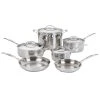 Gourmet Collection Perform all cooking tasks, large or small, with this Cuisinart Non-Stick Cookware set. Simmer, saut, fry, boil or braise to your hearts content. Includes 1.5 Qt. Saucepan with cover, 2.5 Qt. Saucepan with cover, 3 Qt. Saut Pan with cover,6 Qt. Stockpot with cover, 8 in. Skillet, 10 in. Skillet, 18 cm Steamer Insert.