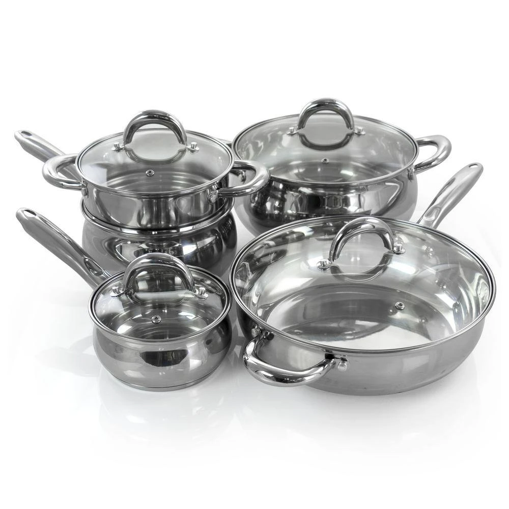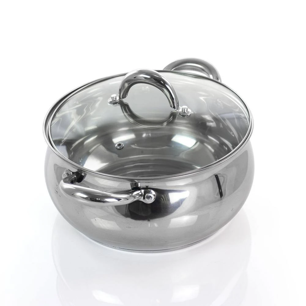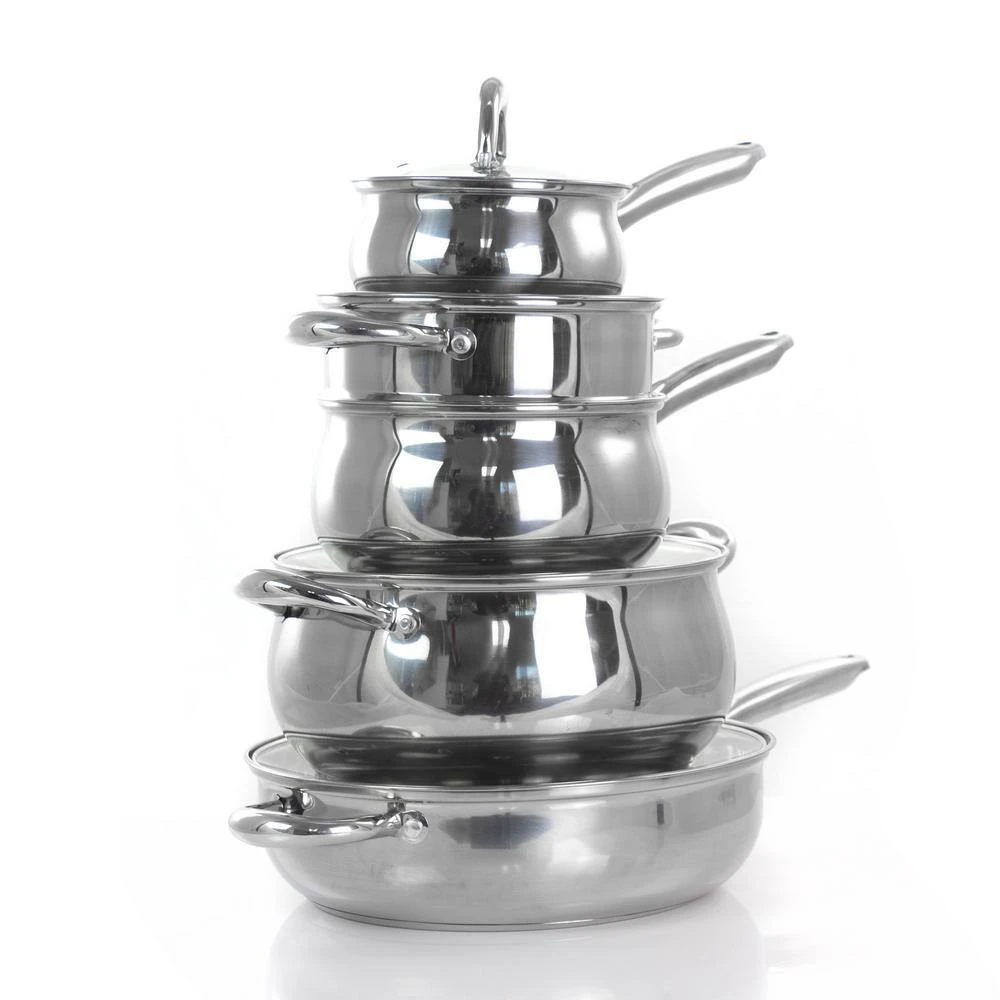 Concoct your wildest edible dreams with the Gibson Home Ancona 12-Piece Stainless Steel Belly Shaped Cookware Set with Kitchen Tools. Perfect for any home chef, this set features an assortment of pots and pans for a multitude of recipes. The belly shaped base provides larger capacity cooking for saucy or soupy dishes. Built with stainless steel, each piece is built to last while boasting an appealing mirror polish exterior. Cook a variety of dishes from beginner level snacks to expert cuisines.