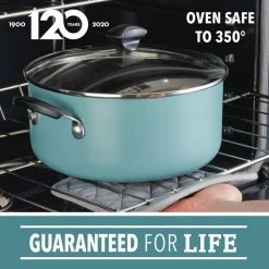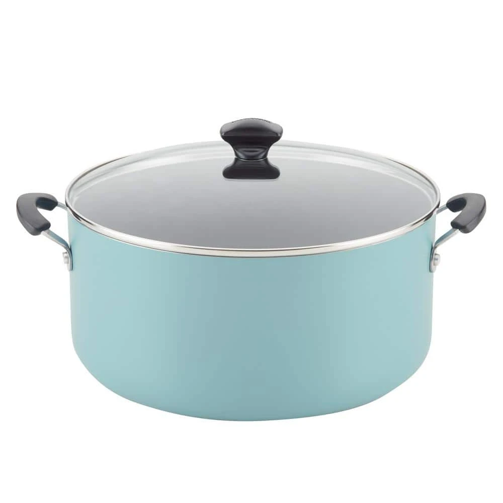Farberware Cookware always combines stylish construction with great cooking results, and the Farberware Aluminum Nonstick 10.5 qt. Covered Stockpot is no exception. Aluminum construction helps this Farberware stockpot heat quickly and evenly from base to rim, and the long-lasting nonstick interior provides beautiful food release for seared sirloin cubes, browned chicken, and all the other delicious ingredients in homemade soups and stocks. The capacity is generous enough for a large batch of the family’s favorite stew or soup for a local picnic or potluck. A shatter-resistant glass lid helps hold the heat and moisture inside the covered pot and keeps the cooking visible for reducing broths and other liquids.