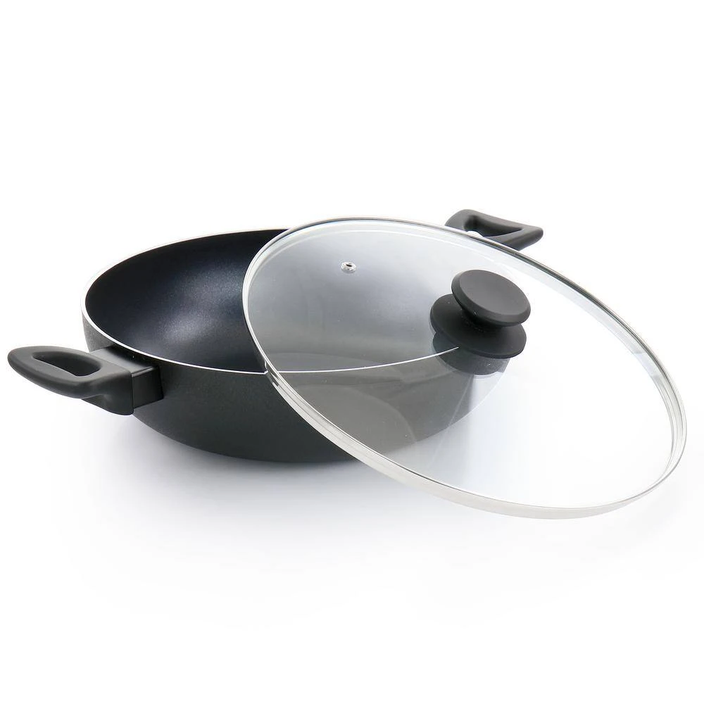 - Set includes: one 5 qt. everyday pan with 2.8 in. handles and lid