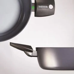 Azul Gres. For a tasty, healthy and sustainable cooking experience. Beyond its charming look, Azul Gres by Moneta provides full gratification to those who approach the kitchen inspired by a healthier, more natural lifestyle. In virtue of this new generation of non-stick ceramic coating, its surface is truly anti-adhesive (non-stick) hence guaranteeing long-lasting, low-fat cooking. Its distinguished gradient affect is an invitation to experience new tones of inspiration in the kitchen. On the same token, its innovative features deliver undeniable technical benefits. FINEGRES non-stick porcelain ceramic coating consists of inorganic composites and natural solvents (alcohol and water only) without any presence of nickel and/or heavy metals.