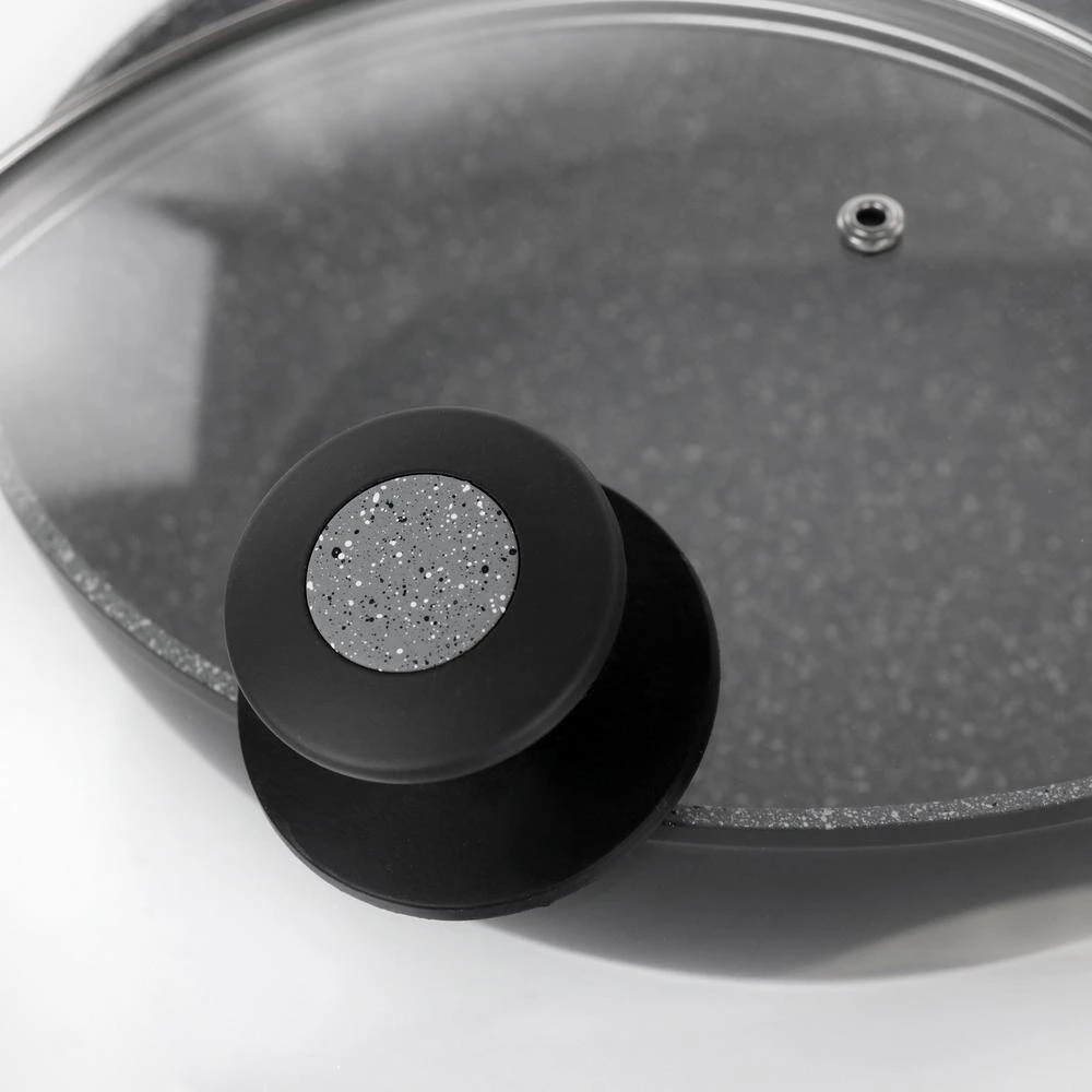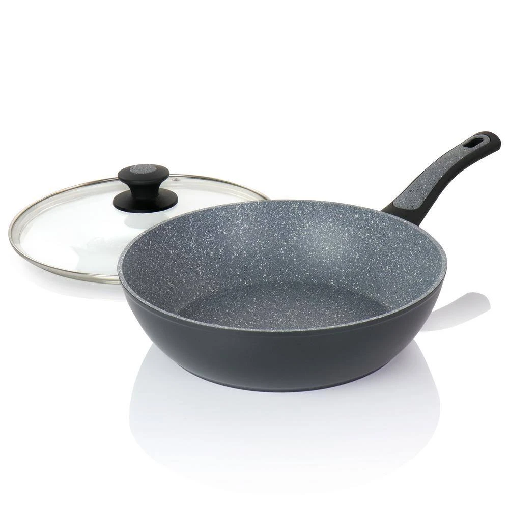 Cook to your heart’s content with the Oster Bastone 3 qt. Aluminum Nonstick Saute Pan in Speckled Gray. Its aluminum body allows for even heating for a proper cooking process. Cut down on oils and fats with the nonstick coating, allowing for healthier meals. The cool touch soft grip handle and knob provide safe handling regardless of the heat. Put together fantastical dishes ranging from fried eggs, to seared steak for guest to enjoy.