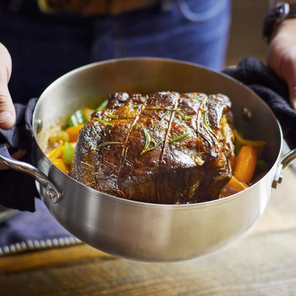 - Stovetop to oven: induction compatible stainless steel casserole is broiler and oven safe to 500°F without lid, oven safe to 350°F with lid