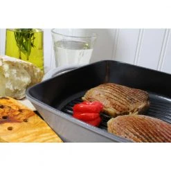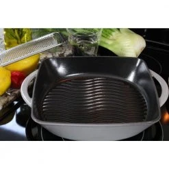 Chasseur’s Carronde 10 inch cast iron grill provides all the advantages of an outdoor grill, with all the convenience of indoor cooking. Sear and cook the perfect grilled meats, pork, lamb, fish and steak. Excellent for grilled vegetables. Constructed of thick cast iron to maintain its temperature during cooking and to spread heat evenly, maximizing its grilling capabilities. Chasseur’s enameled cast iron cookware is valued for its versatility on all cooking surfaces, flame, oven, induction, electric, and its exceptional browning capability. This together with the ease with which it can be cleaned due to the exterior double enamel coating makes Chasseur enameled cast iron the best choice for cookware.
