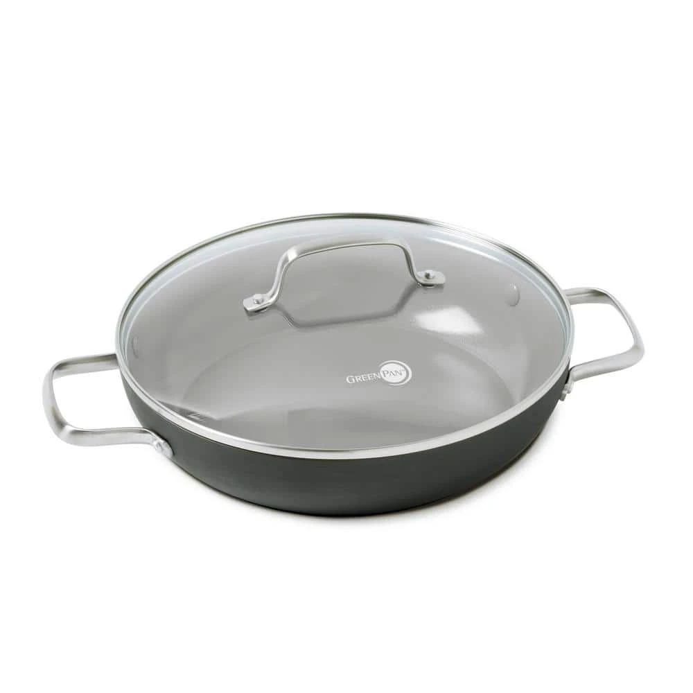 The Chatham 11 in. Ceramic Non-Stick Covered Everyday Pan with 2 Side Hand les encompasses all of the very best GreenPan features in one flawlessly designed product. Chathams interior is complete with Thermolon healthy ceramic non-stick. Thermolon achieves cooking perfection with less oil and is easy to clean, but for your convenience is dishwasher safe.