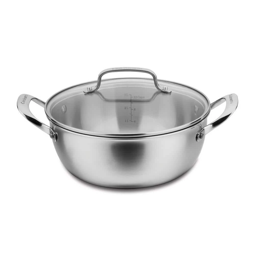 The kitchens of France were the inspiration behind the elegant Cuisinart Tri-Ply Stainless Cookware collection. This versatile 4 Quart Dutch oven is generously sized and ideal for simmering, boiling and stewing, keeping food moist and full of flavor. Round out your cookware with our 4 Quart Dutch Oven and Glass Lid, offering the perfect convenience for family cooking with induction ready performance.