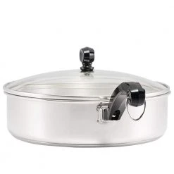 - BRILLIANT SHINING COOKWARE: The saute pan’s heavy-duty stainless steel is polished to a mirror finish for a classic touch; the self-basting lid helps seal in heat and moisture