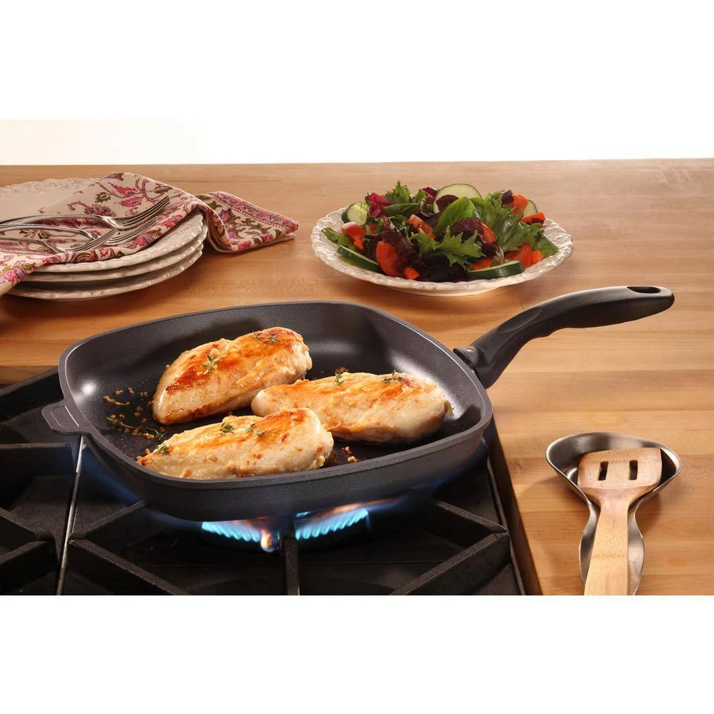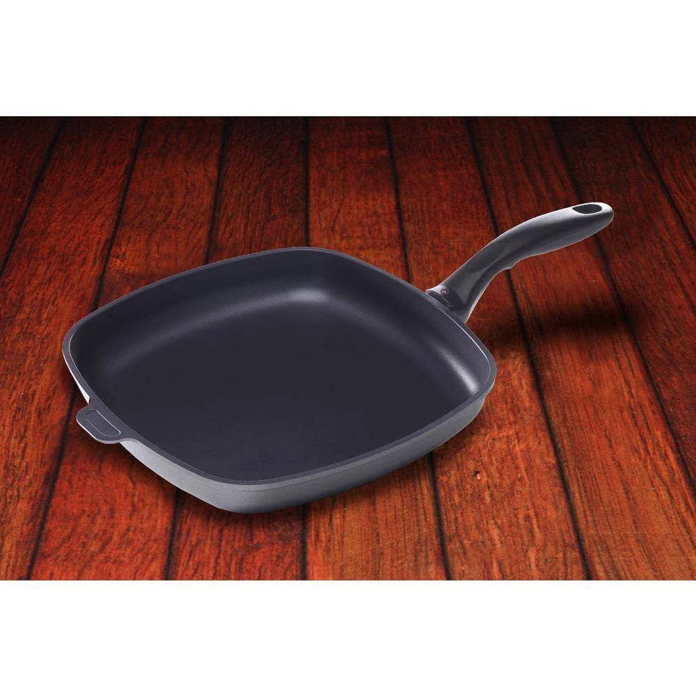 Swiss Diamond’s revolutionary nonstick coating is reinforced with real diamonds to create a long lasting, naturally non-stick surface that browns like stainless steel without the messy cleanup. Like all Swiss Diamond cookware, it’s oven-safe up to 500°F for additional versatility, including the ergonomic handle. The ergonomic handle, designed for comfort and balance, stays cool on the stove top while cast aluminum construction evenly heats the pan.