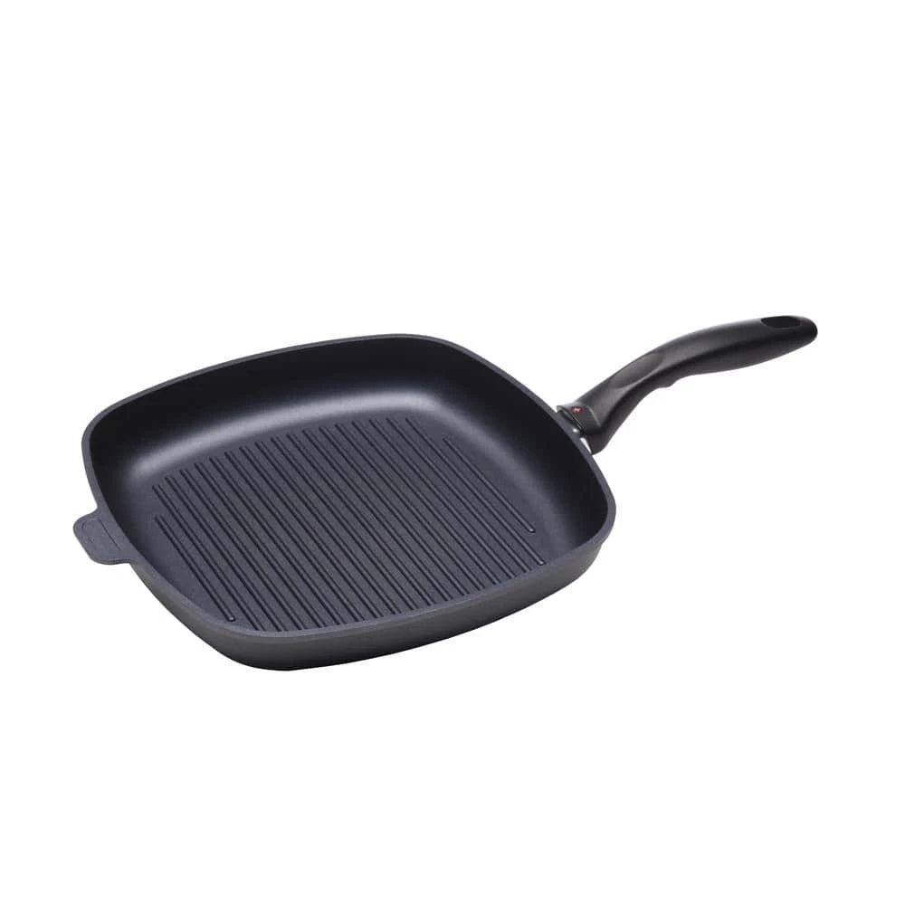 Grilled foods just taste better. Swiss Diamond can help you realize your dream of grilling every meal with the help of our 11 in. x 11 in. Swiss Diamond Non Stick Square Grill Pan for induction cooktops. The ribbed bottom of the grill pan cooks Steaks, Vegetables, Pork Chops, and Chicken with nicely seared grill marks of caramelized goodness. Clean-up is just one of the many advantages of our state-of-the-art nonstick coating made with real diamonds; just use hot water and soap to clean easily.