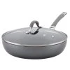 Radiant and solution-oriented, the Rachael Ray Create Delicious Aluminum Nonstick 3-Quart Everything Pan brings high-quality performance and everyday convenience to home chefs eager for kitchen versatility with style.Featuring vibrant, shimmering color combined with value-driven functionality, this versatile Everything Pan is perfect for, well… everything! From creamy risottos to delicious pastas to a vegetable saut, the pan’s durable aluminum construction provides ultra-even heating and features enhanced PlatinumShield Technology black nonstick reinforced to be 9 times harder than titanium for effortless food release. Plus, the pan is dishwasher safe for quick and easy cleanup.Want more? Colorful, double-riveted stainless steel and silicone handles provide comfort and control thats oven safe to 400F, and a shatter resistant glass lid locks in heat and flavor while allowing foods to be monitored while they cook. Flared cookware rims make for easy pouring, and an induction-suitable stainless steel base provides strength, durability, and versatility to use the cookware on any stovetop.From dishwasher-safe convenience to the enhanced durability of PlatinumShield nonstick, reach for the easy brilliance of the Rachael Ray Create Delicious Aluminum Nonstick 3-Quart Everything Pan and get ready to get delish.