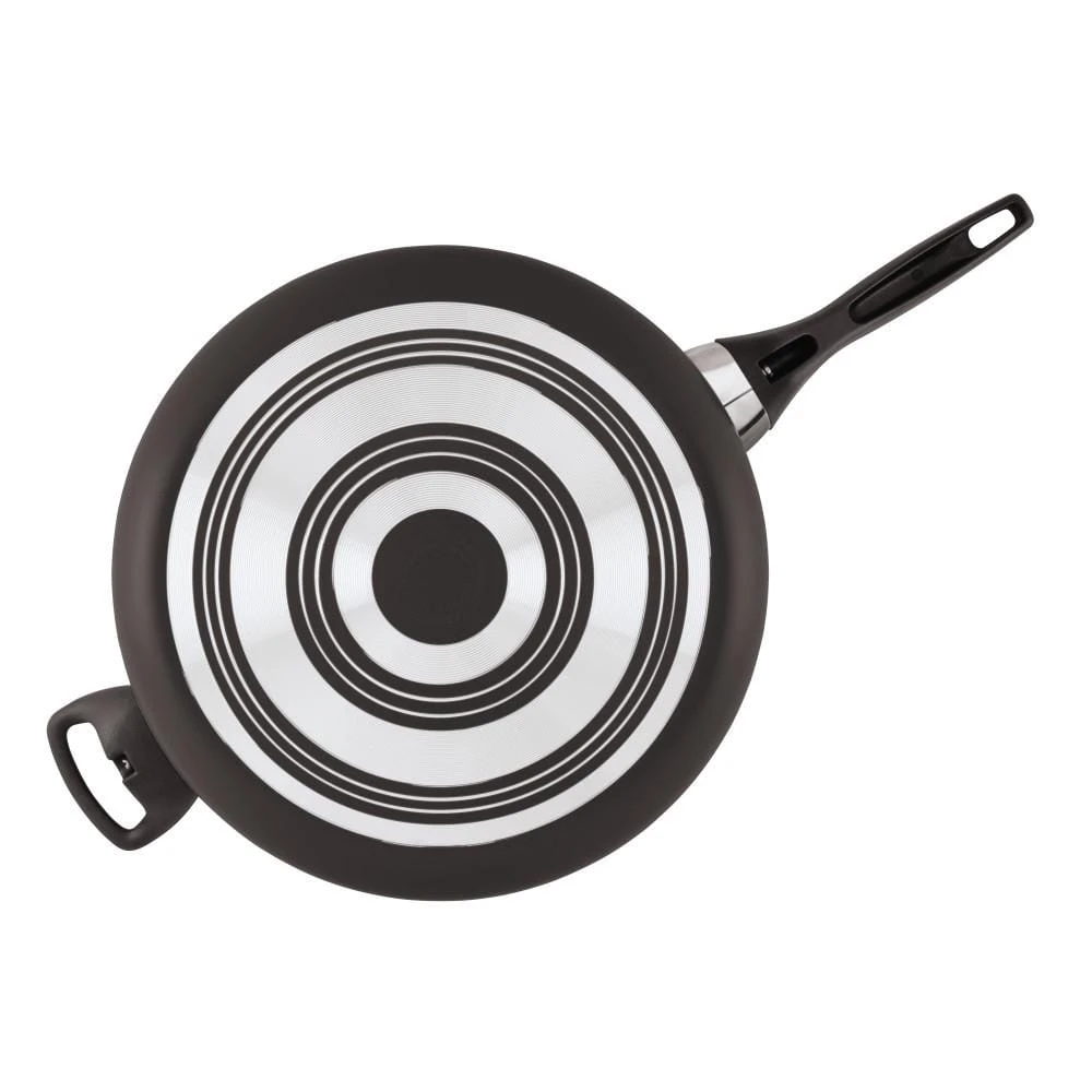 - STURDY HELPER HANDLE: Double-riveted handles provide a confident grip; helper handle aids in moving the extra large nonstick pan