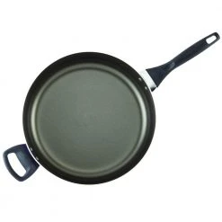 - STURDY HELPER HANDLE: Double-riveted handles provide a confident grip; helper handle aids in moving the extra large nonstick pan