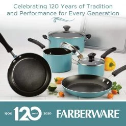 “Equip the kitchen for convenience and reliability to make family-sized one-pot meals with the Farberware Cookstart 6-Quart Nonstick Jumbo Cooker. Crafted from heavy-duty aluminum for excellent heat distribution, this big 6 qt jumbo cooker is ideal for making a zesty seafood paella or a delicious cheddar mac-n-cheese and boasts a superior DiamondMax(tm) nonstick interior that performs 3X better than ceramic nonstick for easy food release and cleanup with a distinctive look. Oven safe to 350°F with comfortable handles for a confident grip, this jumbo chef’s pan has a shatter-resistant glass lid to seal in heat and moisture and a colorful exterior that looks great in any kitchen. Plus, it’s dishwasher safe for quick, convenient cleanup. Be ready to create big and delicious one-pan meals every day with the convenient, easy cleaning Farberware Cookstart 6-Quart Nonstick Jumbo Cooker with DiamondMax(tm) Nonstick.”