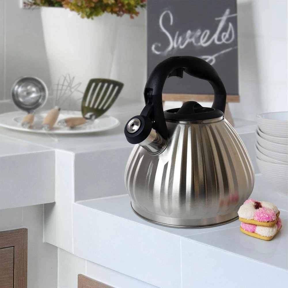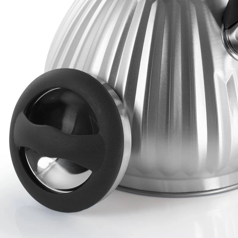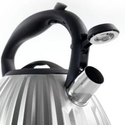 Prepare your hot coffees, teas, and cocoas with the Mr. Coffee Donato 2.5 Qt. Stainless Steel Whistling Tea Kettle Brushed Chrome. This kettle is crafted from quality stainless steel and with an integrated whistle which signals when the water is boiling. The flip up spout cover equipped with this kettle also allows for safe and easy pouring. This stove top kettle is also hand wash only in order to maintain its quality.