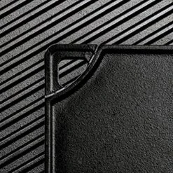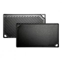 - Reversible with smooth griddle and ribbed grill sides