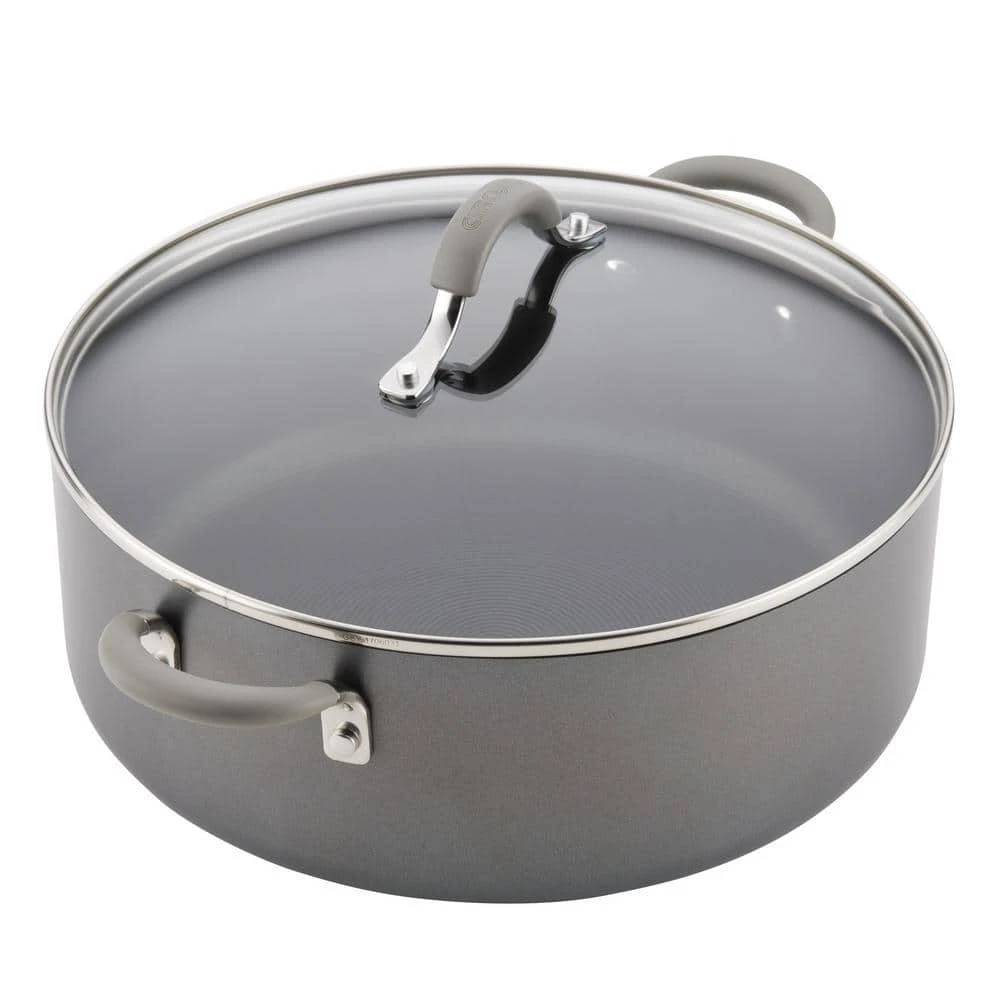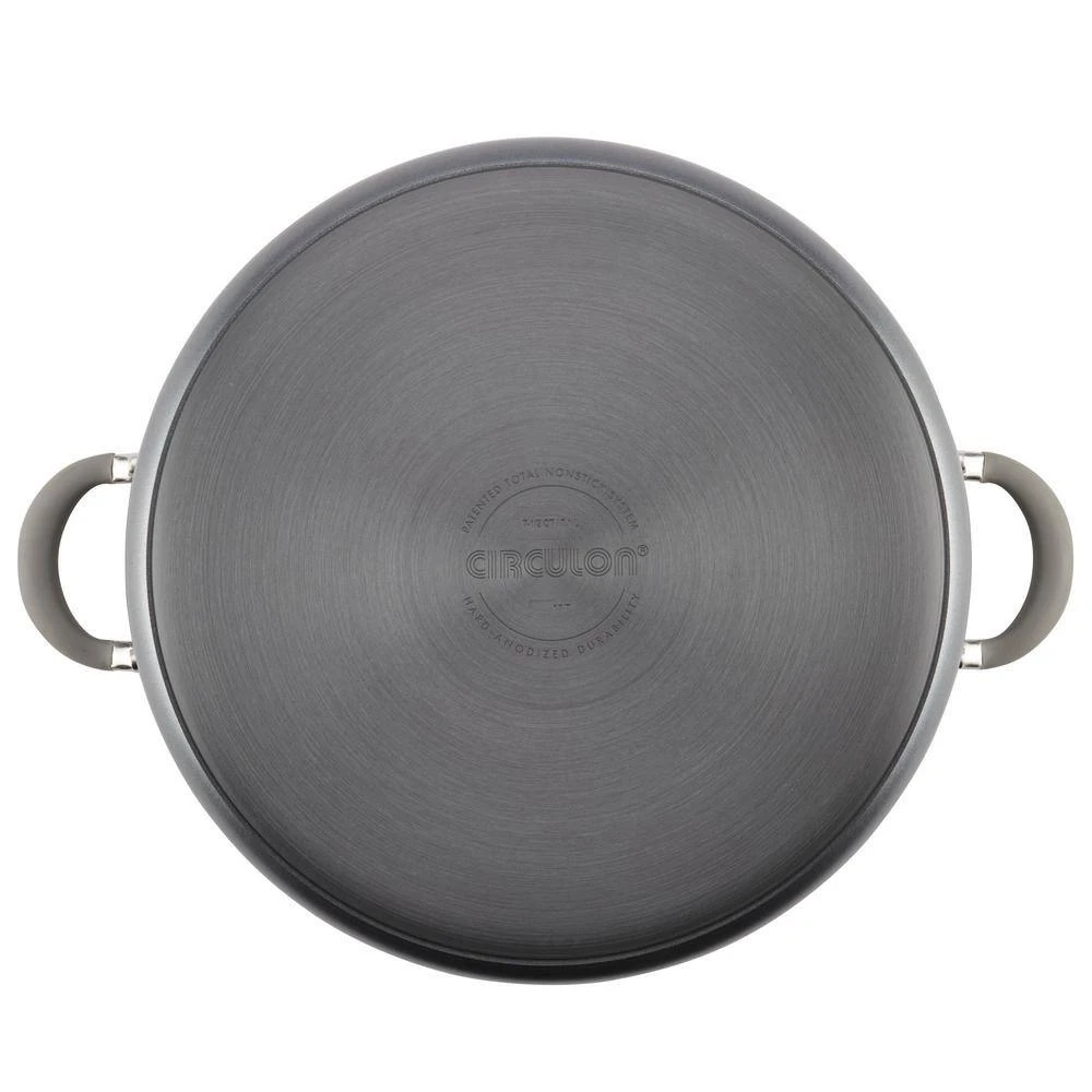 Make one-pot family meals with ease and cook smarter (not harder) in the kitchen with the Circulon Elementum 7.5-Quart Covered Stockpot. This amply-sized stockpot is crafted from super-tough, hard-anodized aluminum that’s twice as strong as stainless steel and boasts the TOTAL Nonstick System of raised circles and triple layer, premium quality nonstick for long-lasting food release and easy cleanup. Make an easy weeknight Cheesy Veggie Mac or pull together a Wine and Tomato Braised Brisket with Spicy Red Onion Jam to feed the whole family with this high capacity, high performance stockpot. A shatter resistant, tempered glass lid seals in heat and moisture and dual riveted stainless steel handles with sleek silicone grips provide a solid, comfortable grasp and are heat safe up to 400 F. PFOA-free, metal utensil safe nonstick inside and out comes in show-stopping oyster gray exterior color while delivering superior food release and super-easy cleanup of even the stickiest recipes. Circulon nonstick technology is so advanced, it lasts 10 times longer than ordinary nonstick. That’s why Circulon comes with a Hassle-Free Lifetime Guarantee. For a one-pot-meal-friendly stockpot that delivers on the cookware gotta-haves of nonstick performance, even heat distribution, long-lasting durability, and easy cleanup, choose the high capacity solution of the Circulon Elementum 7.5-Quart Covered Stockpot, because when circles align, your day delivers.