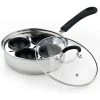 The set includes a removable poaching rack, wooden poaching timer and recipe card. Can be used on the stove over two burners or in the oven. This item is super durable and easy to clean.