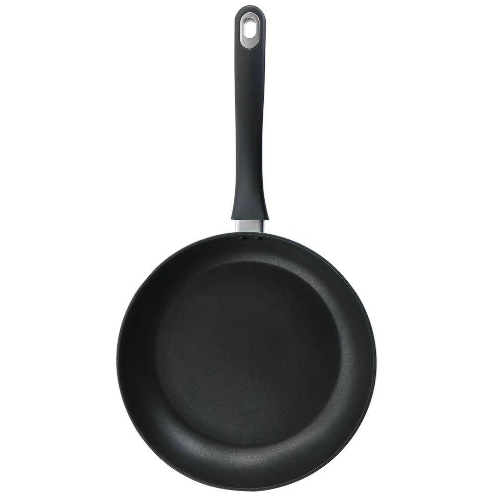 This 11 in. frying pan by Martha Stewart is made with a heavy duty forged aluminum body that provides strength and durability. The long lasting construction features a nonstick interior coating for low-fat cooking as well as easy clean up. Bakelite handle with soft-touch coating stays cool for easy mobility from burner to burner. This pan is finished with a polished outer enamel coating and is compatible with all stove tops, including induction.