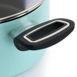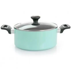 This 5 qt. Dutch oven by Martha Stewart is the perfect combination of style, quality, and convenience. The durable forged aluminum body is perfect for braising, stewing, and boiling. Featuring soft touch handles that stay cool for easy transport, and a nonstick interior for low oil cooking and easy cleanup. Comes with a tempered glass lid that allows safe monitoring of your cooking progress. And to top it off, this Dutch oven is compatible with all stove tops including induction.