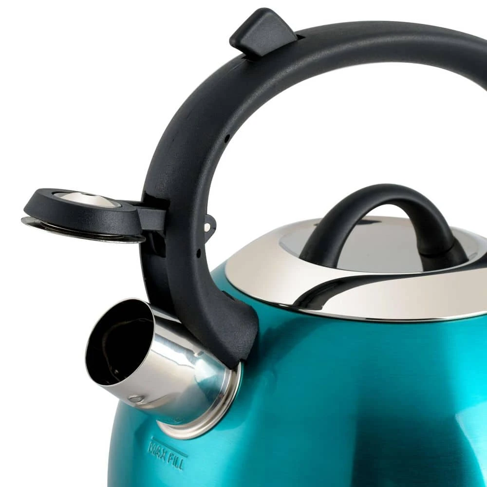 The Flintshire 1.75 Qt. whistling tea kettle by Mr. Coffee is sleek and modern in design with a simple and easy to use construction. This kettle features a flip-up spout cover for easy pouring and a stay cool handle for safe handling when kettle is hot. Duo tone brushed stainless steel design is lightweight and durable for long lasting use. Prepare your favorite hot beverages with this easy to use kettle. Hand wash recommended.