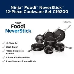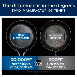 Ninja Foodi NeverStick Cookware is the cookware that won’t stick, chip, or flake. With a max manufacturing temperature of 30,000°F, our cookware won’t rapidly lose nonstick like traditional pans made at 900°F can. Designed to withstand high-heat cooking and aggressive scrubbing. Our exclusive coating is metal-utensil safe and dishwasher safe. This cookware has a glossy black exterior that is easy to clean. Oven safe to 500°F. All range capable: gas, electric, glass ceramic, and induction. Sear, saute, griddle, pan fry, bake, roast, broil. Fully backed by Ninja 10 Year Guarantee. *Use as directed.