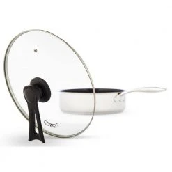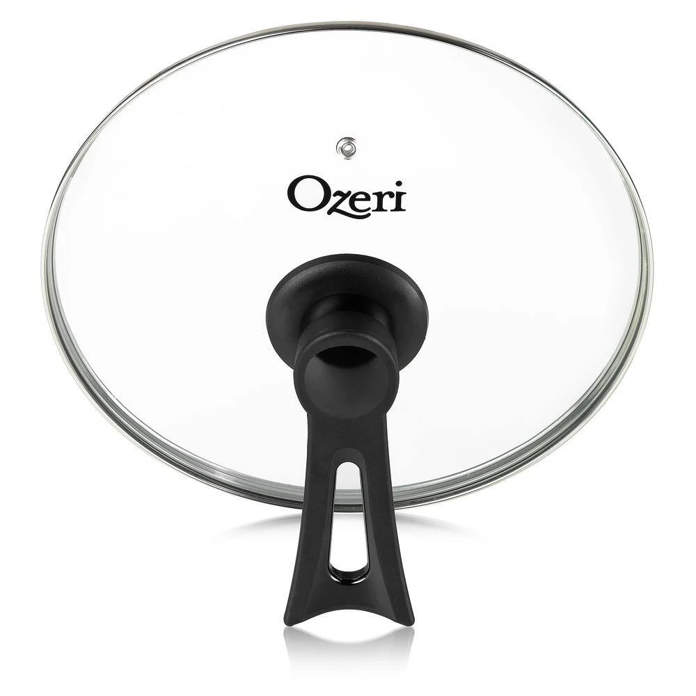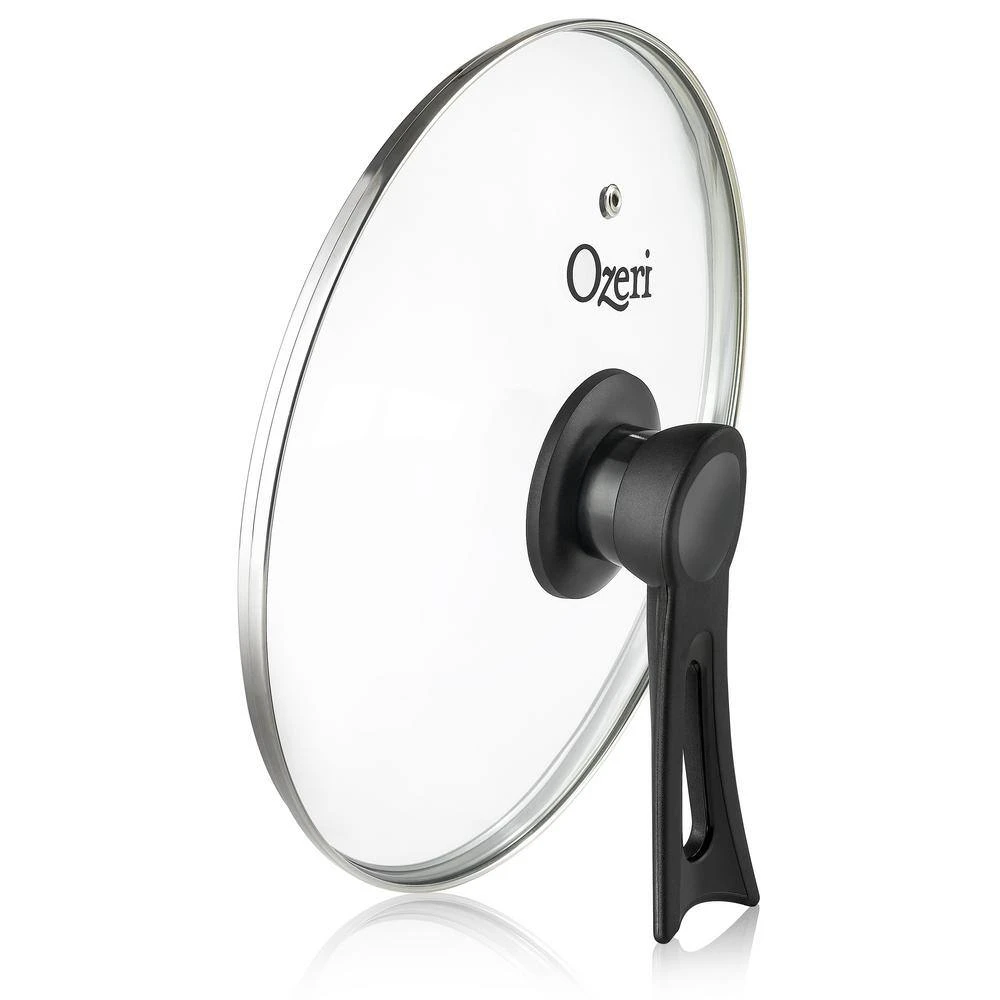 Introducing the new Ozeri Free-Standing Pan Lid with Tempered Glass. Exclusively designed for the Ozeri Collection of Ozeris Green Earth, Stone Earth and Stainless-Steel Earth Pans, these innovative lids stand vertically to save counter space when cooking, and eliminate the need for that much-needed third hand when stirring or serving. Made of professional-grade tempered glass with a built-in pressure release steam vent, and equipped with a heat-resistant Bakelite handle, each lid is oven-safe to 300°F (150°C) for the most demanding cooking and baking projects. Boasting transparent glass, the Ozeri Free-Standing lid lets you monitor your cooking progress without releasing heat or losing moisture, flavor or nutrients, allowing you to cook your dishes to perfection with ease. The Ozeri Free-Standing Pan Lid with Tempered Glass is 100% dishwasher-safe. Backed by Ozeris No-Hassle warranty, your satisfaction is guaranteed.