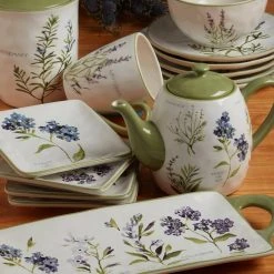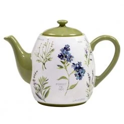 Beautiful green herbs with colorful accents decorate Certified International’s “Fresh Herbs” Teapot designed by the popular artist Susan Winget. Culinary herbs such as chamomile and lavender adorn this 40 oz. capacity ceramic Teapot. Great for serving your favorite tea or coffee. Coordinates with dinnerware sold separately to add even more spice to your table. Get the additional matching serveware to complete this “fresh” look.