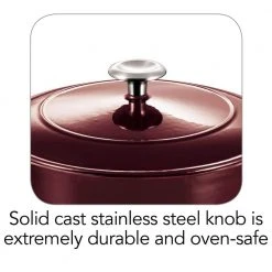 - Solid cast stainless steel knob is extremely durable and oven-safe