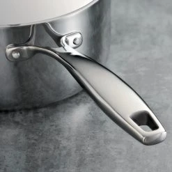 - Precision cast riveted handles and mirror-polished stainless-steel lid