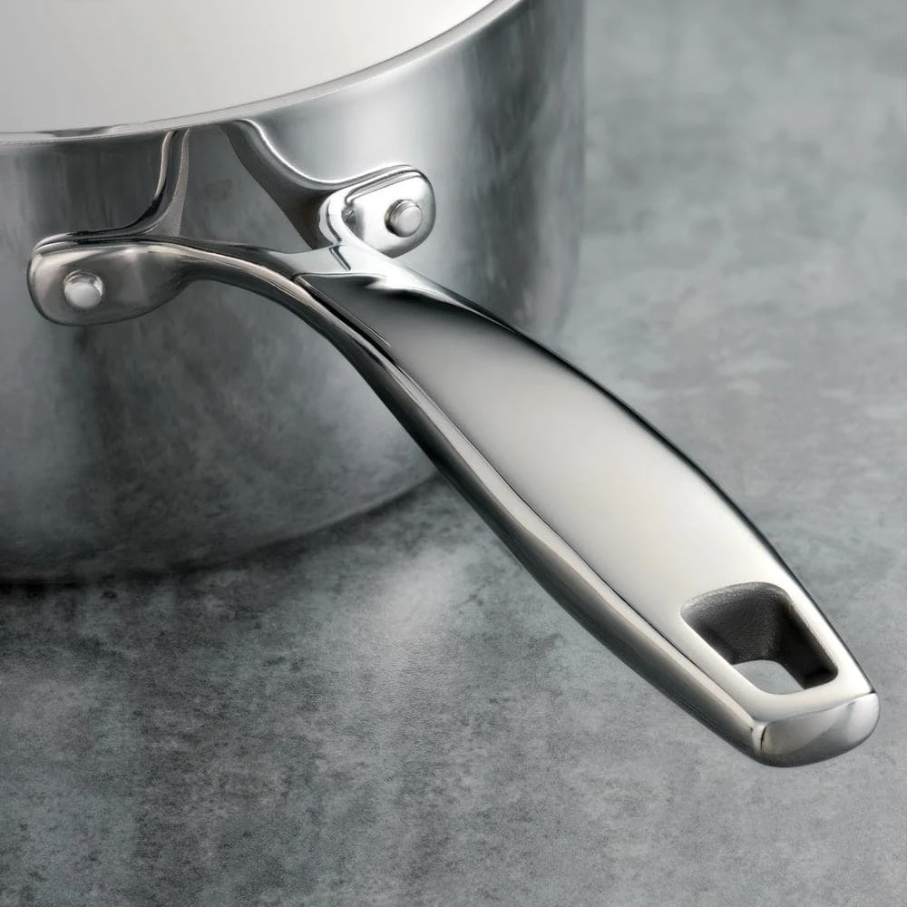 - Tri-ply clad construction (18/10 stainless steel, aluminum core, magnetic stainless steel)