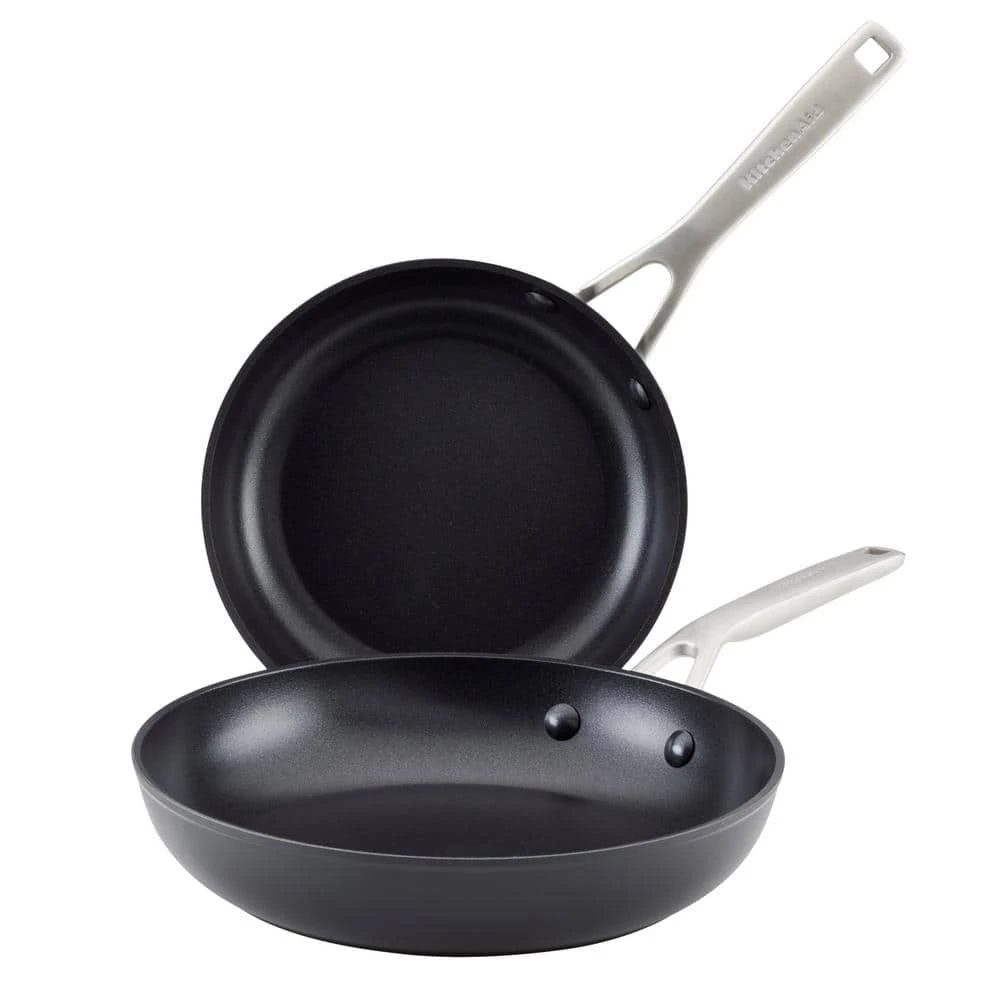 - Premium food release: KitchenAid hard anodized frying pans are finished with triple layer, PFOA-free nonstick to stand up to daily wear and tear