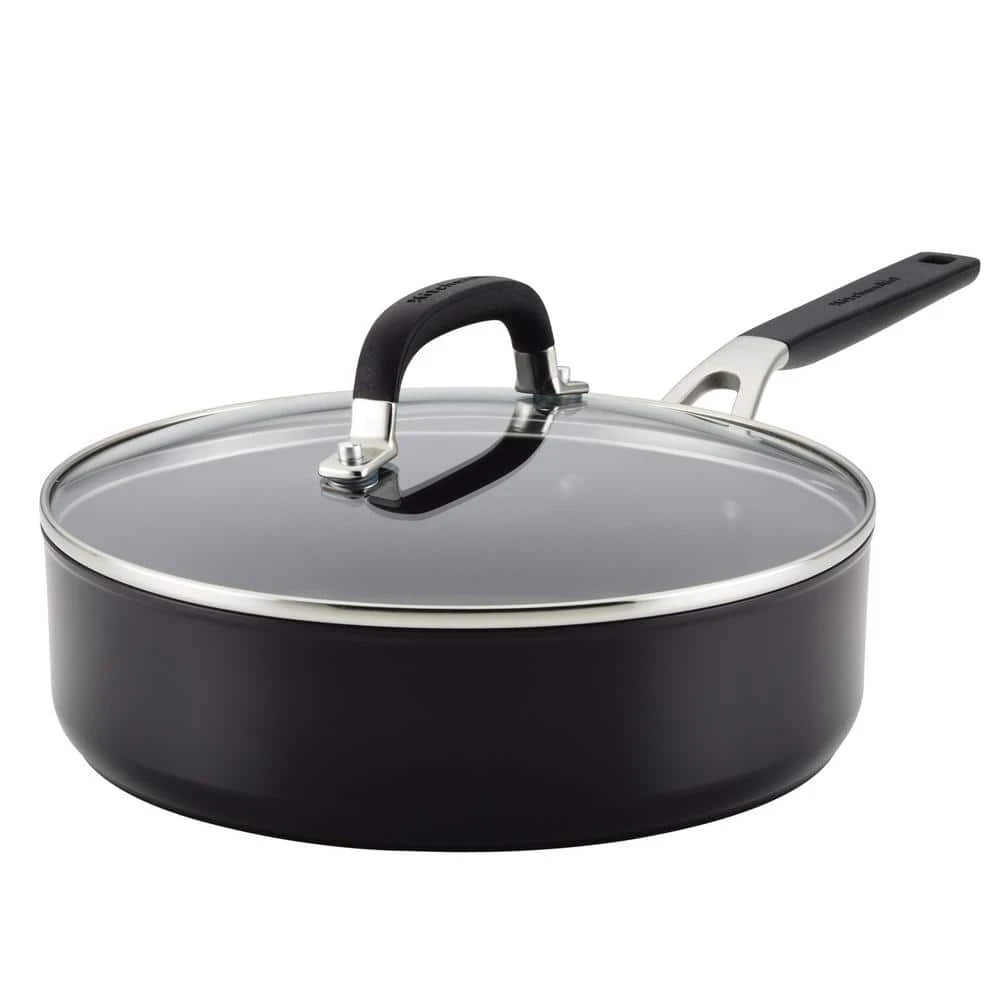 - Quick heating performance: KitchenAid 3-quart saute pan is crafted from durable hard anodized aluminum that is 6x harder than traditional aluminum for quick heat distribution and everyday use