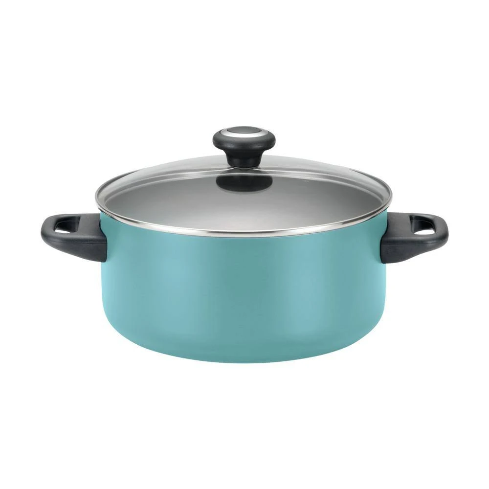 Create delicious meals and desserts with the convenient versatile Farberware High Performance Nonstick 17-Piece Cookware Set. For over a century, Farberware has brought performance, convenience and reliability to countless kitchens, and this cookware set continues that tradition for a new generation. Crafted from heavy-duty aluminum that heats evenly, the cookware pieces feature long-lasting nonstick for effortless food release and easy cleanup. The frying pans and griddle also boast the unique dimpled surface of the SmartGlide Nonstick System with top-quality nonstick, which improves nonstick durability and creates air pockets that transfer heat to food quickly, so making over-easy eggs and pancakes is a breeze. Choose from six convenient Prestige nylon kitchen tools to stir sauces in the Dutch oven, whisk gravy in the saucepans or remove chocolate chip cookies from the cookie pan. Dual-riveted handles on the cookware offer a confident grip, and Shatter-resistant glass lids seal in heat and moisture. The cookware is Oven safe to 350°F, the cookie pan safe to 450°F, and the entire set dishwasher safe for convenience.From saucepans and pots to a cookie sheet, Dutch oven to kitchen tools, the Farberware High Performance Nonstick 17-Piece Cookware Set has meal preparation covered.