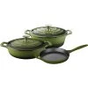 - Set includes: 1- and 2 Qt. Saucepans with Lids, 5 Qt. Dutch Oven with Lid, 8 in. Frying Pan, 10 in. Frying Pan with Lid, 11 in. Square Griddle, Medium Cookie Pan, 6 Kitchen Utensils