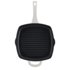 Get ready to make fun, flavorful meals and put your signature twist on traditional recipes with the Ayesha Collection 10-Inch Cast Iron Square Grill Pan. Constructed from durable, virgin ore cast iron, this grill pan is ideal for cooking on any surface including gas and induction and is perfect for searing up healthy skinless rosemary chicken breasts to pair with white cheddar mac or for pulling off Ayesha’s Easy Pan Steaks for a sophisticated mid-week feast. The cast iron body features matte black enamel on the pan’s interior for great searing and browning and a glossy metallic fleck enamel on the pan’s exterior for a modern countertop style accent. Plus, the pan’s raised edges provide plenty of room for one pot meals. A solid main handle and smaller helper handle make it practically effortless to pull together crispy, juicy pork chops and apples on the stovetop and then move them right to the oven, where the skillet is safe to 500° F, so baking and broiling come off without a hitch. Cooking juices and sauces are just as easy to manage with the grill pan’s double pour spouts. Plus, this Ayesha Curry kitchenware helps support No Kid Hungry to provide up to 500,000 meals to children in need. Learn more at nokidhungry.org/onedollar. Great meals have never been more accessible or stylish than with the Ayesha Collection Home 10-Inch Cast Iron Square Grill Pan.