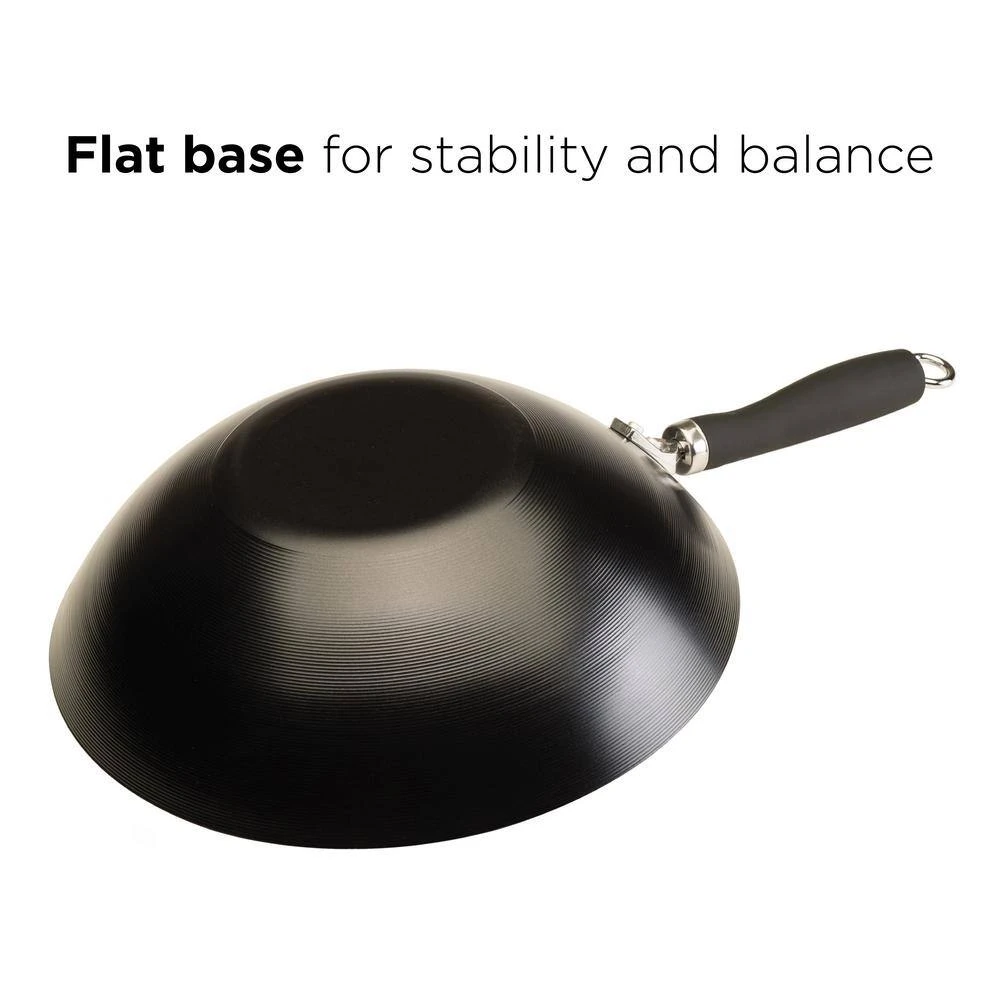 Made of carbon steel and nonstick interior coating this Wok is ideal for your cooking needs. It has a soft touch riveted handle making it easier to hold. Non stick is PFOA free so that it is better for the environment. Wok has a flat bottom for better balance and is suitable for all heat sources, including induction.