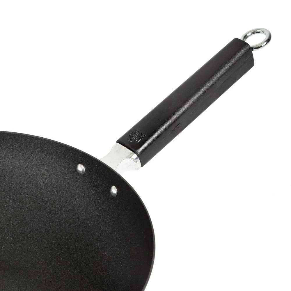 Cook like a pro with this versatile stir-fry pan. A smaller, shallower version of the flat-bottom carbon steel wok, this pan can be used for so many dishes beyond stir-fry-from sauteed veggies to scrambled eggs. Made from carbon steel, it’s lighter and smoother than cast iron, yet just as hardy, with a nonstick coating tough even to withstand the scrapes and rakes of metal utensils. When you pop off the removable resin handle, this pan can also go from stovetop to oven to keep dishes simmering up to 500 degrees.