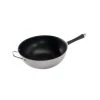 The PFOA/PFOS-free non stick 12 in. wok cooking ware features a stainless steel material with long-lasting DAKIN etching non-stick coating inside and outside for easy food release/ tossing, cleaning, healthy cooking. The stainless steel cooking wok features raised-up honeycomb fire textured pattern that forms an outstanding scratch-resistant surface so it is safe to use metal utensils. Cooks like stainless steel with ease of non-stick cleanup.