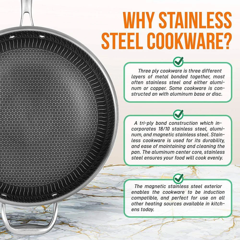 - Cooks like stainless steel with the benefits of non-stick cleanup