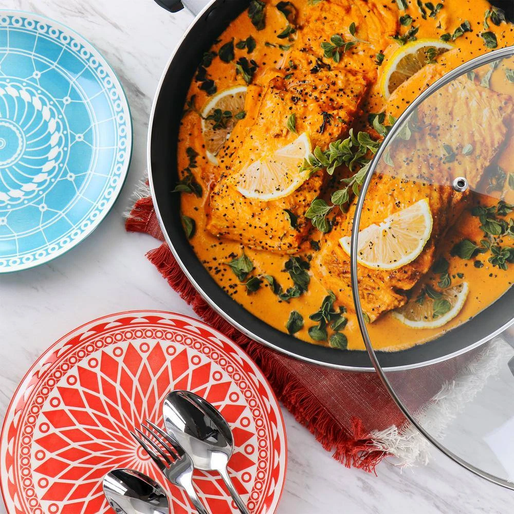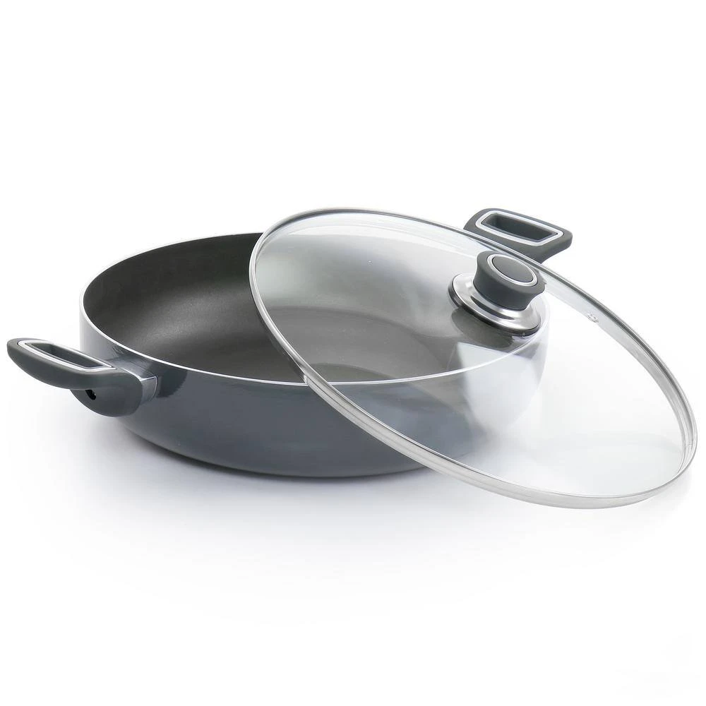- Set includes: one 5 qt. everyday pan with 2.75 in. handles and lid