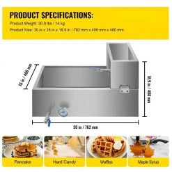 - Sturdy material: well-designed maple syrup evaporator pan, made out of the mirror finish, food-grade thickened (thickness: 1.5 mm) 304 stainless steel. 30 in. x 16 in. x 19 in. in dimensions