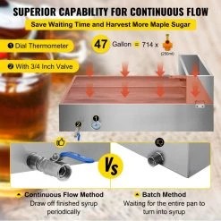 This VEVOR superior evaporator pan is 304 food-grade stainless steel with a mirror-finished surface. It comes with two 3/4 in. throttle valves, a divider board, and a feed tank, which facilitate you to make maple syrup. Great for pancakes, waffles, oatmeal, ice cream, and more. Start taking action today and get your “health angel” tomorrow!