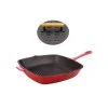 - Includes: 11 in. purple cast iron grill pan and a purple cast iron bacon/steak press