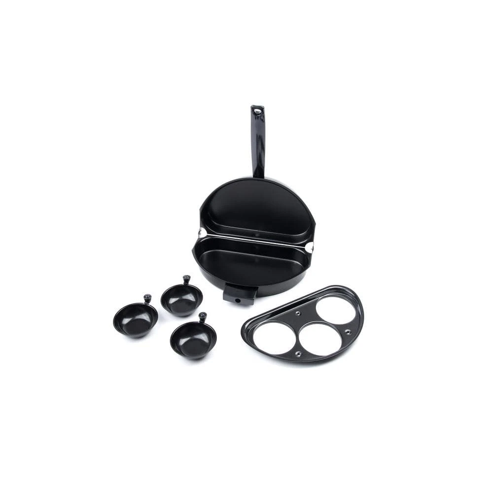 - Includes folding omelet pan and removable poacher insert with 3-individual egg cups
