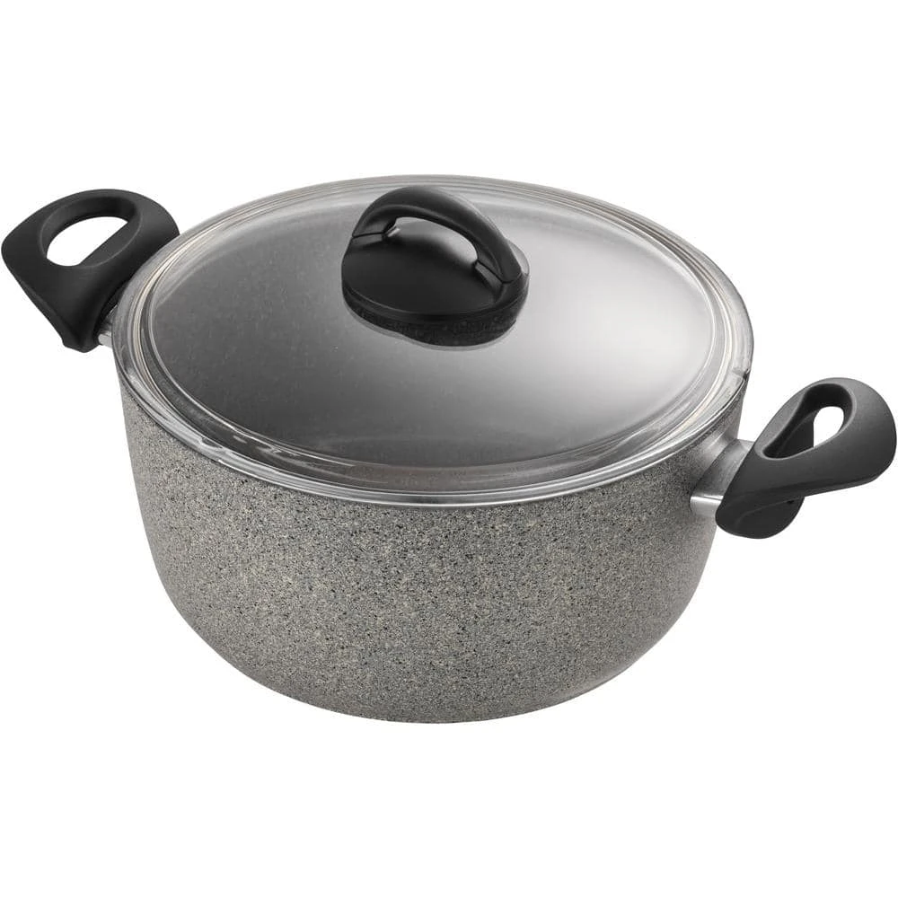 Made in Italy, Ballarini Parma infuses the rich tradition of Italian cuisine into easy-to-use pans for everyday cooking. The revolutionary speckled Granitium Non-stick coating boasts quick release for effortless cooking. Appealing to the eye, this ultra durable coating has a heart of stone it is fork-proof, metal-safe and extremely scratch-resistant, increasing the lifespan of your pan. The easy-to-clean surface ensures that no time is wasted on washing and more time can be spent on cooking. Ballarini’s innovative Thermopoint heat-sensitive handle turns red when hot and green when cool. This lets you know when the pan’s temperature is just right for cooking preventing unnecessary overheating or undercooking and properly cooled off for cleaning. Made from the most pure aluminum in the industry, the fry pan’s cold forged body heats up rapidly and evenly with no hot spots. Three times more energy efficient than cast iron, aluminum is also wonderfully light, eliminating any arm strain. The ergonomic, stay cool handle offers a comfortable grip for maximum control. With Ballarini, experience the ease of Non-stick expertise.